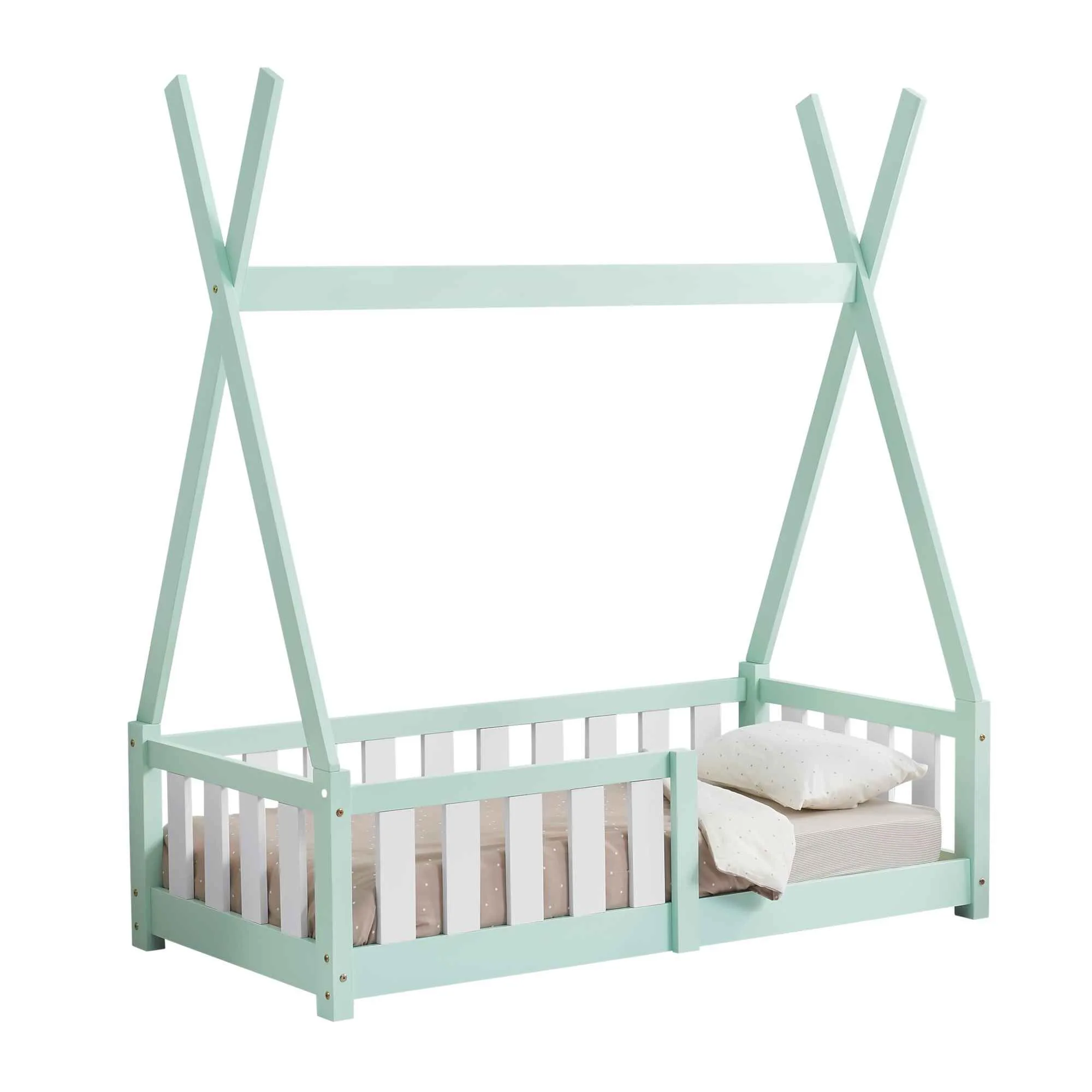 Lit tipi 70x140cm avec barrière - Vert & Blanc