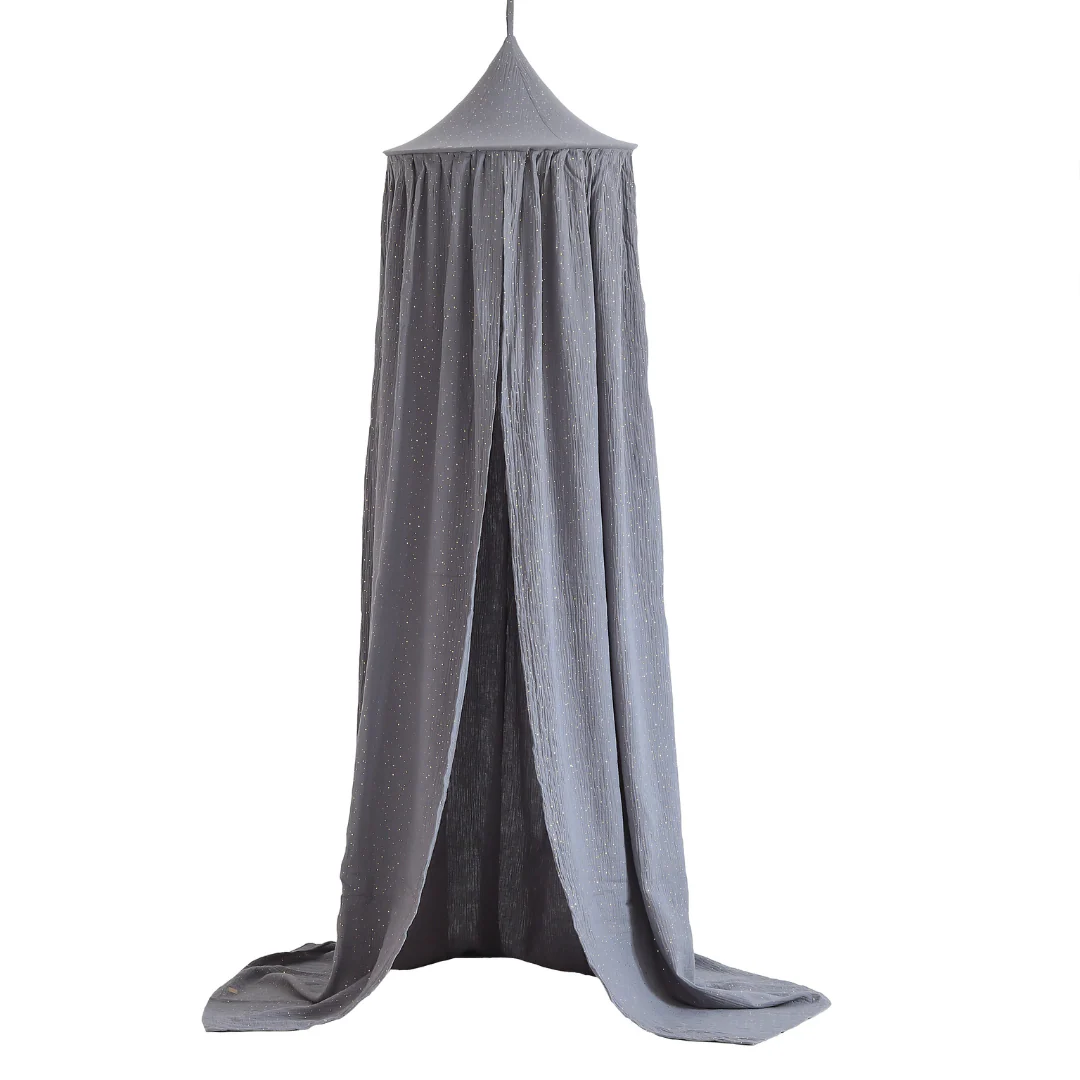 Ciel de lit bébé Gris foncé à pois dorés - Fait main