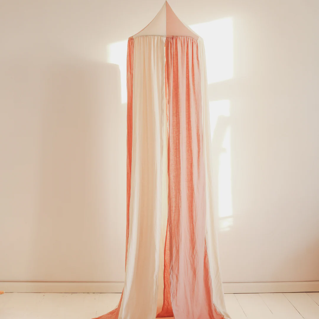 Ciel de lit bébé Rose & écru - Fait main
