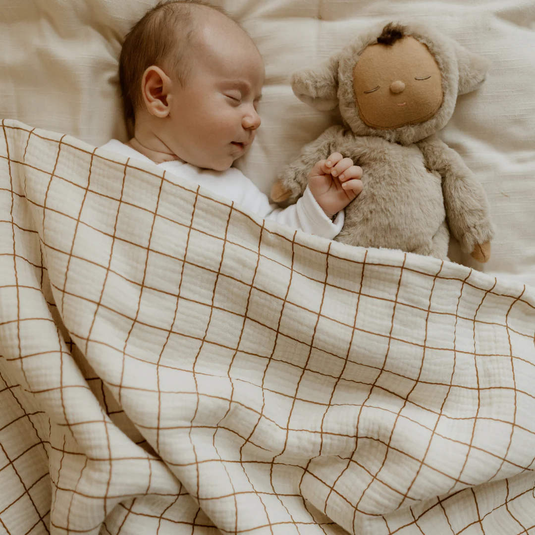 - Le côté carreaux est en double gaze de coton et le côté uni en tissu bouclette tout doux